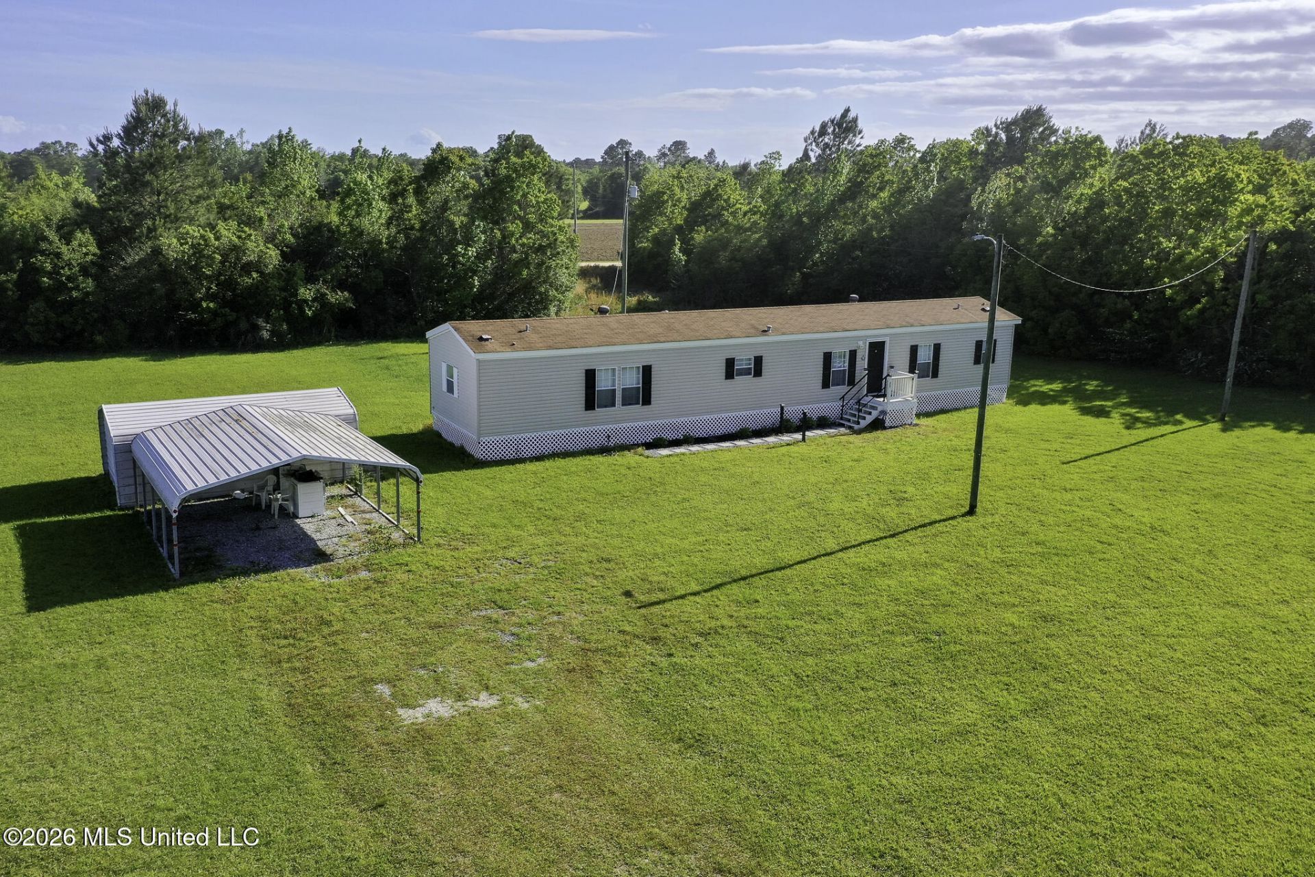Looking for a Move-in Ready Home on 1.79+ Acres. This spacious, clean, well-maintained Mobile Home includes lots of natural light, all kitchen appliances: refrigerator, range, dishwasher and countertop microwave; newer front porch entry & rear stairs with landing and a unique utility room/laundry. You enter this space thru cabinets in the kitchen. Washer & Dryer will stay with the property for the sale. If you need storage, the kitchen and dining areas have cabinets, extended built-in's and open shelves for displaying your favorite decorations. The nice sized Main Bedroom has an ensuite Bath with dual sinks, plenty of counter space, sunken tub for relaxation, separate shower and walk-in closet. Main living area is open to the dining area and kitchen which gives you plenty of living space. The cook is never excluded from the activities. *Deed Restrictions with the Sale & Purchase of this property: No subdivision of the Land is permitted and No additional mobile homes may be placed on this property.* Land will be subdivided from larger parcel. Survey has been completed to reflect the amount of land and where the subdivision lines are located. It is Parcel 2 on the survey. Carport and Storage Shed will stay with the sale/purchase of this property. Tree area behind the mobile home is part of the land for this property. Call for your appointment to see this lovely, peaceful home. Buyer must be pre-qualified.
